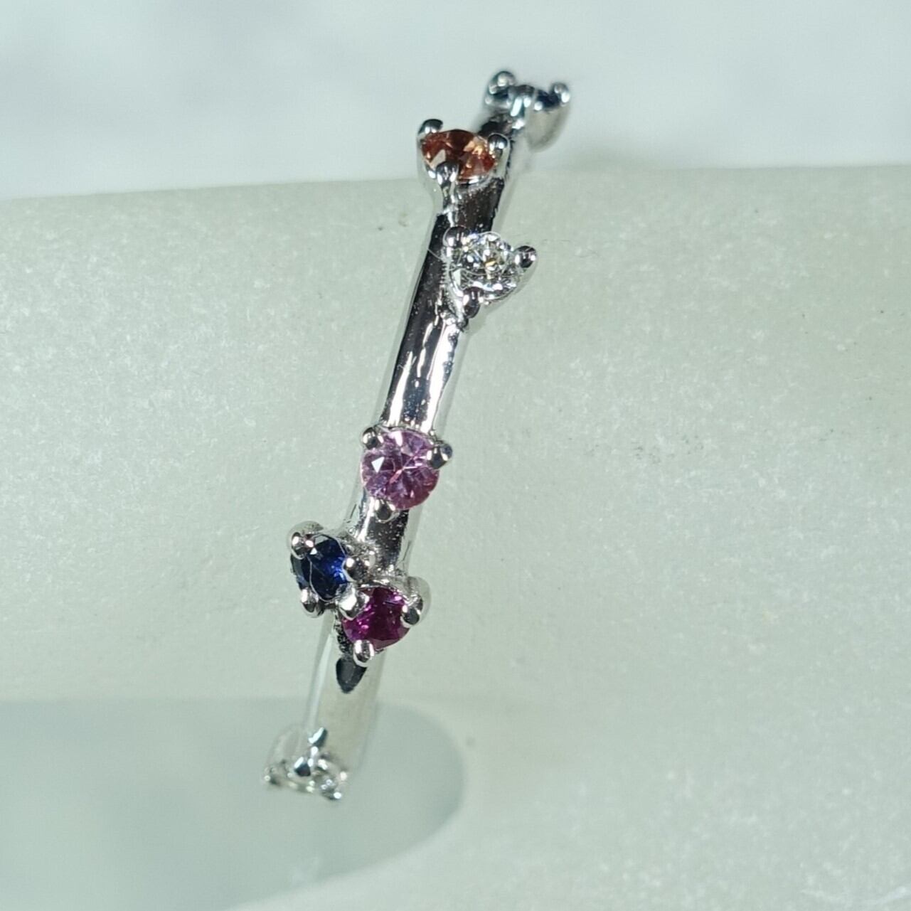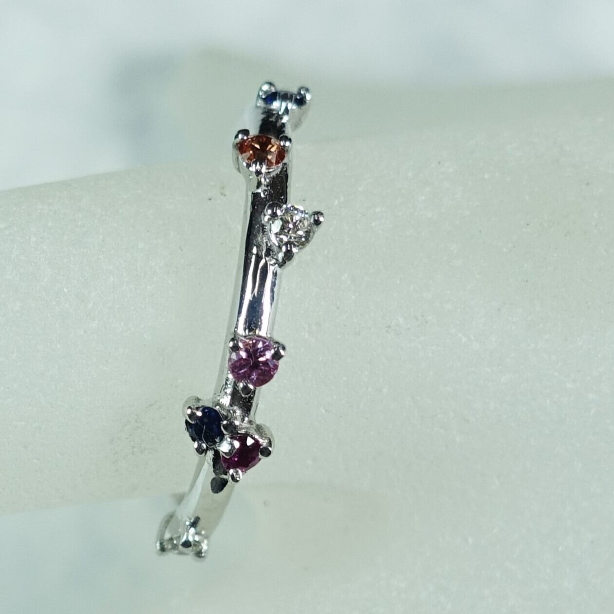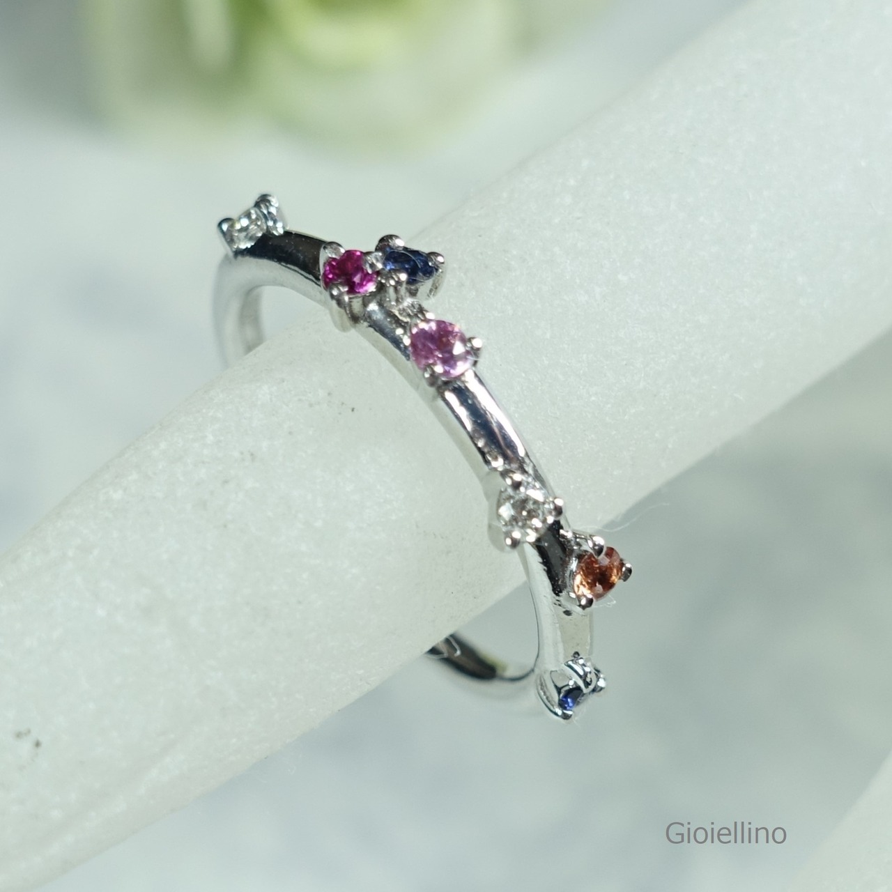 素材:PTアラカルトストーンリング プラチナリングにダイヤモンド、サファイア、ピンクサファイア 計7石