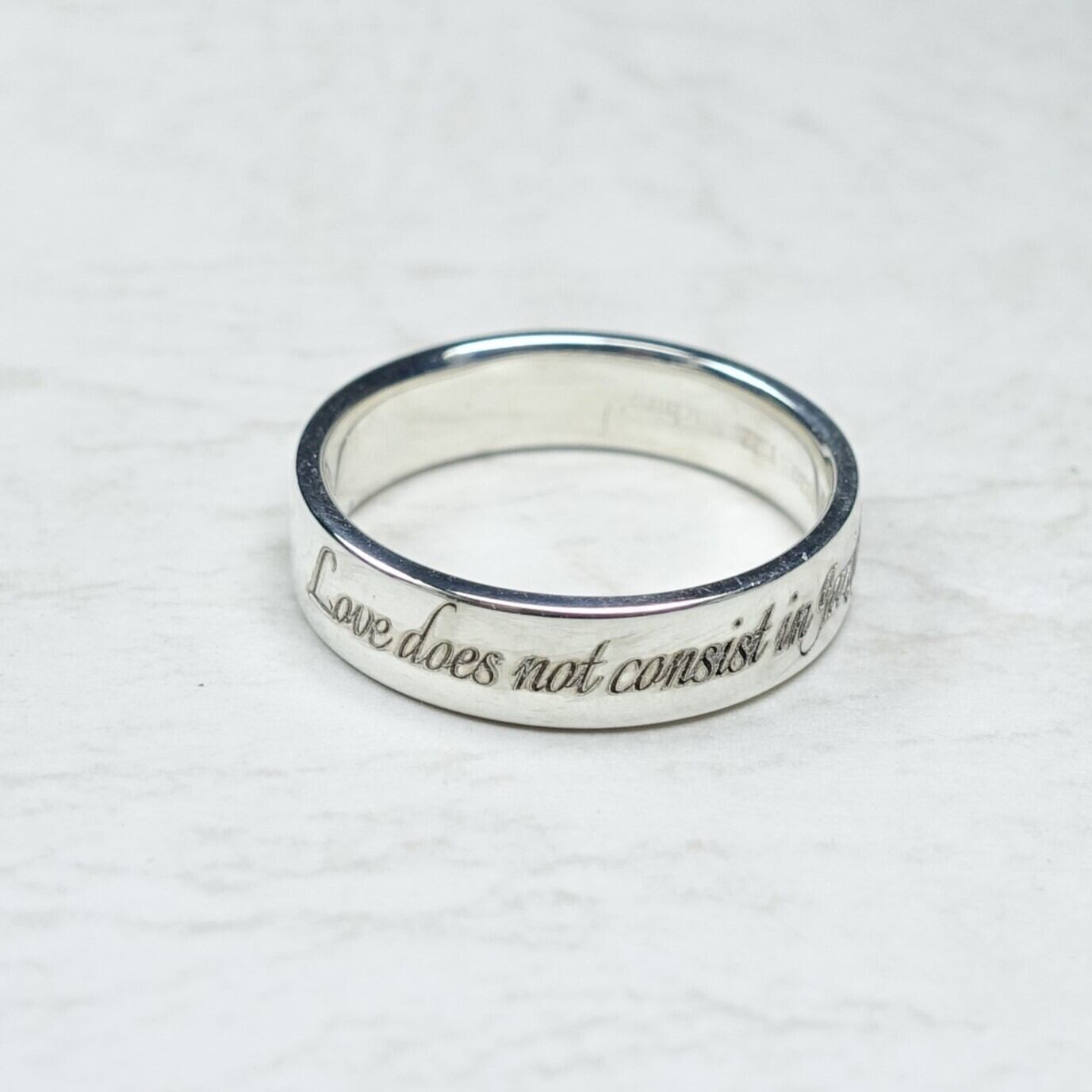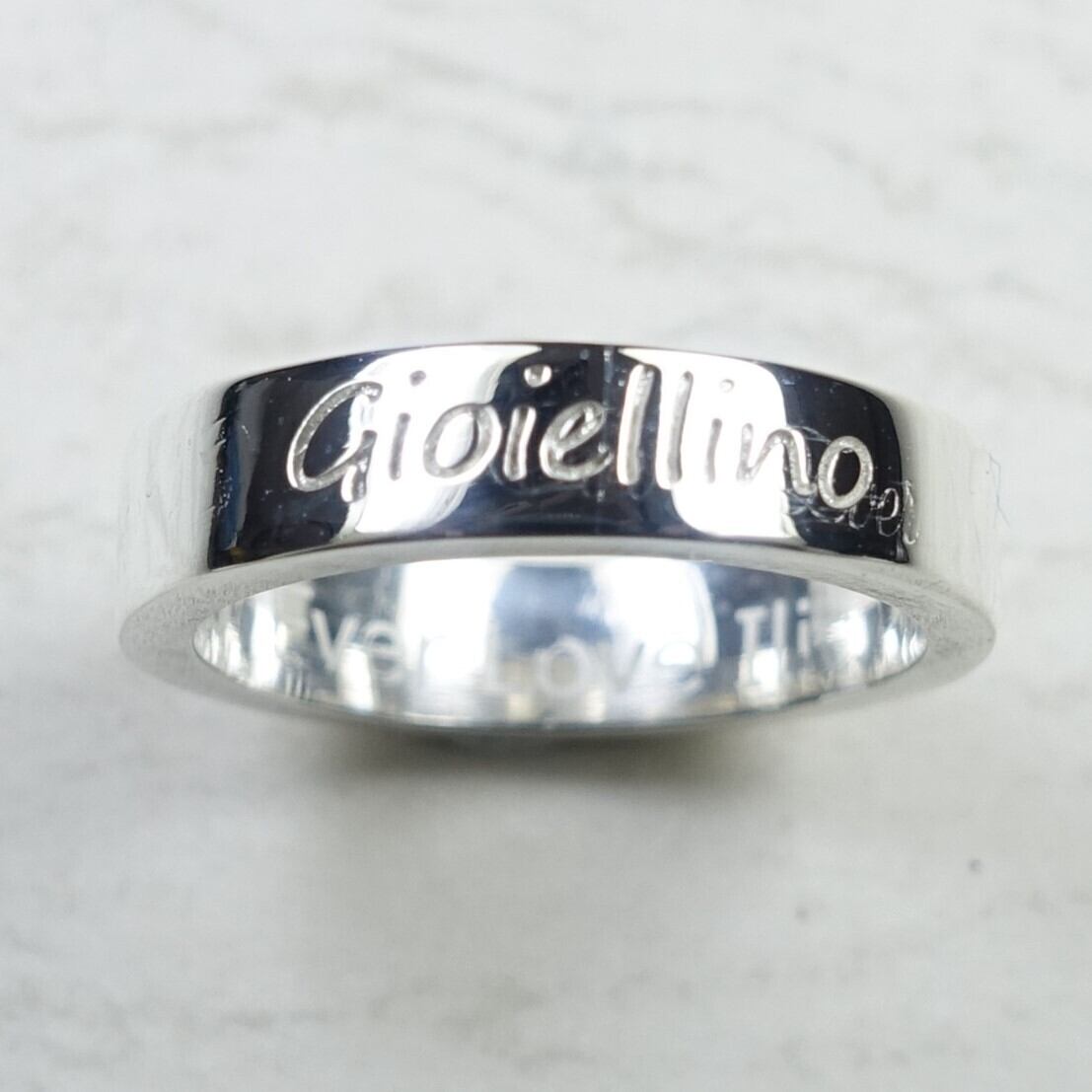 内側や外側にネーム、日付、言葉、メッセージなどお好きな文字をお入れします。字体のご相談もお受けいたします。表と裏、どちらもお入れします。 ①表に入れたい文字 ②内側に入れたい文字PTネーミングジュエリーリング