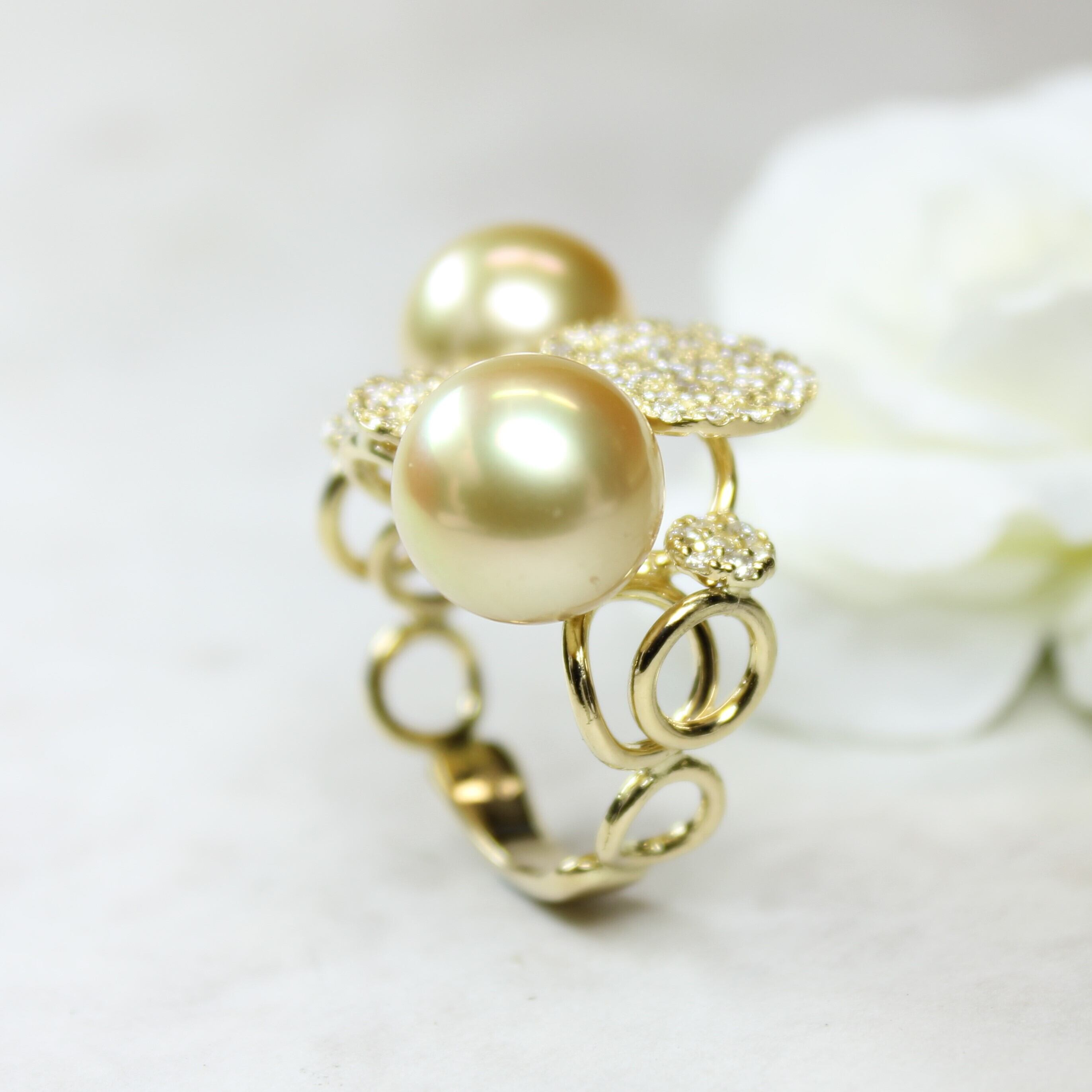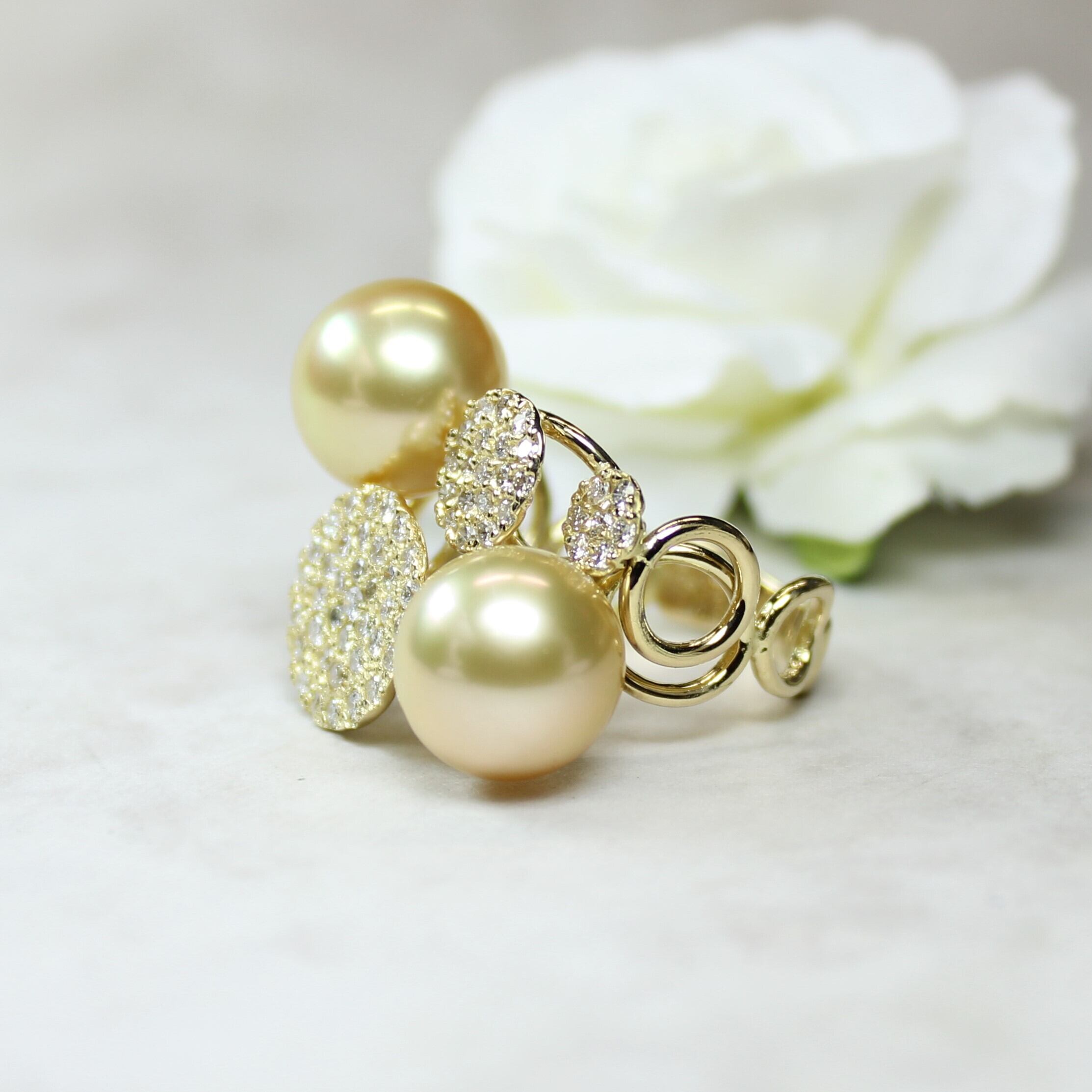 K18南洋真珠、パヴェダイヤモンドデザインリング