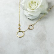 K18でリング型のデザインに作成し、サファイアを合わせたネックレスです。ネックレスはチェーンと一体型となっていますので取り外しは出来ません。